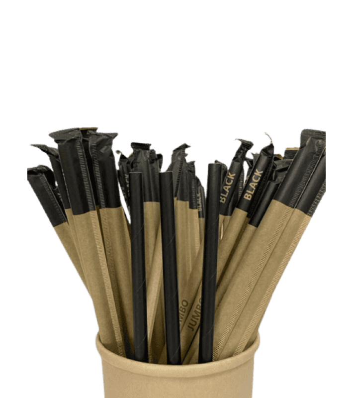 καλαμάκι χάρτινο Jumbo black Κ9 8mm 21cm 1/1 250pcs/20packs