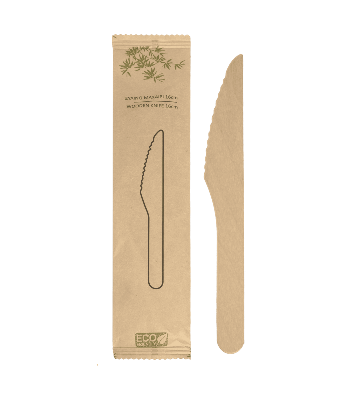 Κουβέρ ξύλινο με μαχαίρι 16cm συσκευασμένο 1/1 σε craft χάρτινο περιτύλιγμα 50τεμάχια*20πακέτα