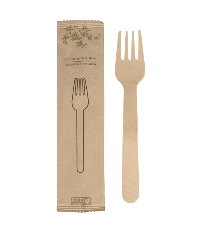 Κουβέρ ξύλινο με πιρούνι 16cm συσκευασμένο 1/1 σε χάρτινο craft περιτύλιγμα 50τεμάχια*20πακέτα