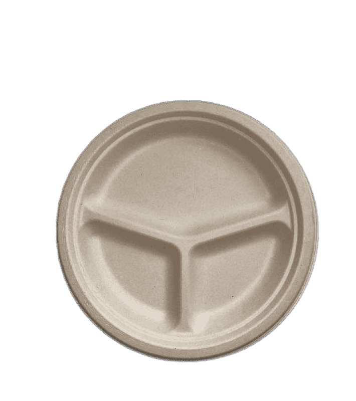 Πιάτο από ζαχαροκάλαμο στρογγυλό 26cm 3θέσιο natural 50τεμάχια*10 πακέτα