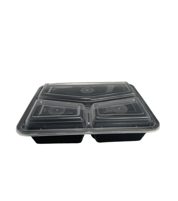Container παραλληλόγραμμο PP μαύρο για φούρνους μικροκυμάτων 950ml 3θέσιο P58 με καπάκι 50τεμάχια*3πακέτα
