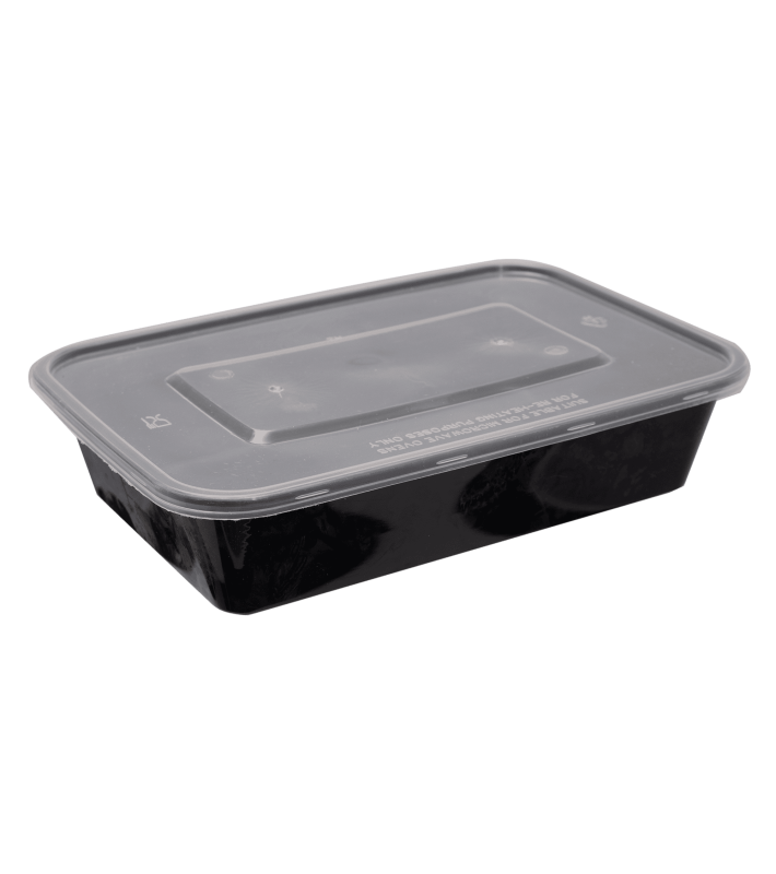 Container παραλληλόγραμμο PP μαύρο ρηχό για φούρνους μικροκυμάτων 1000ml Τ45 με καπάκι 50τεμάχια*3πακέτα