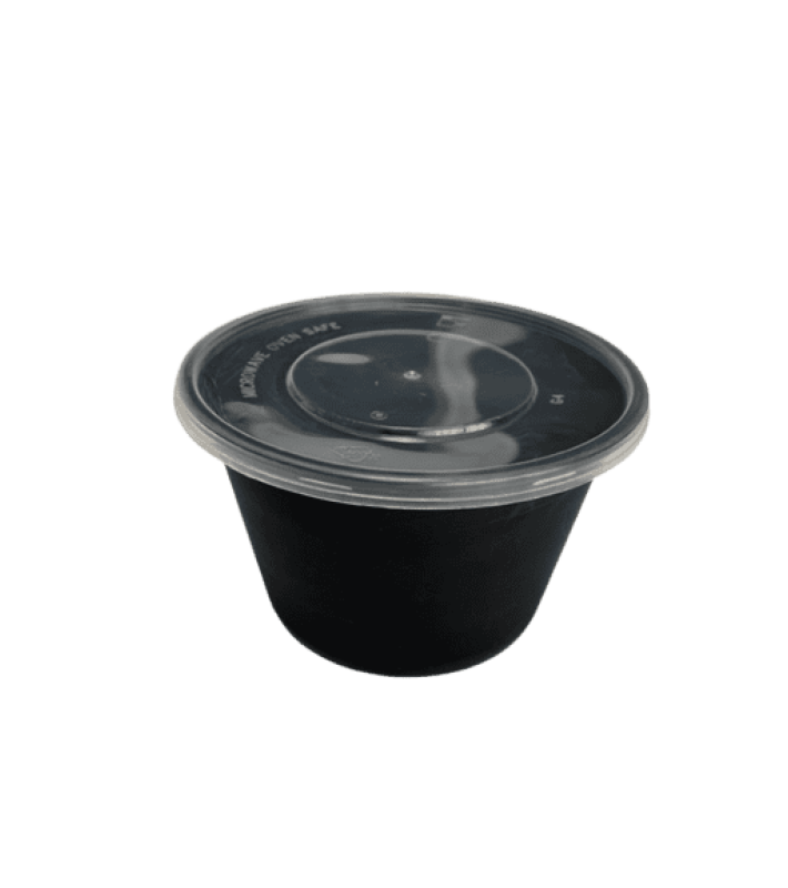 Container στρογγυλό PP μαύρο για φούρνους μικροκυμάτων 1000ml T47 με καπάκι 50τεμάχια*6πακέτα