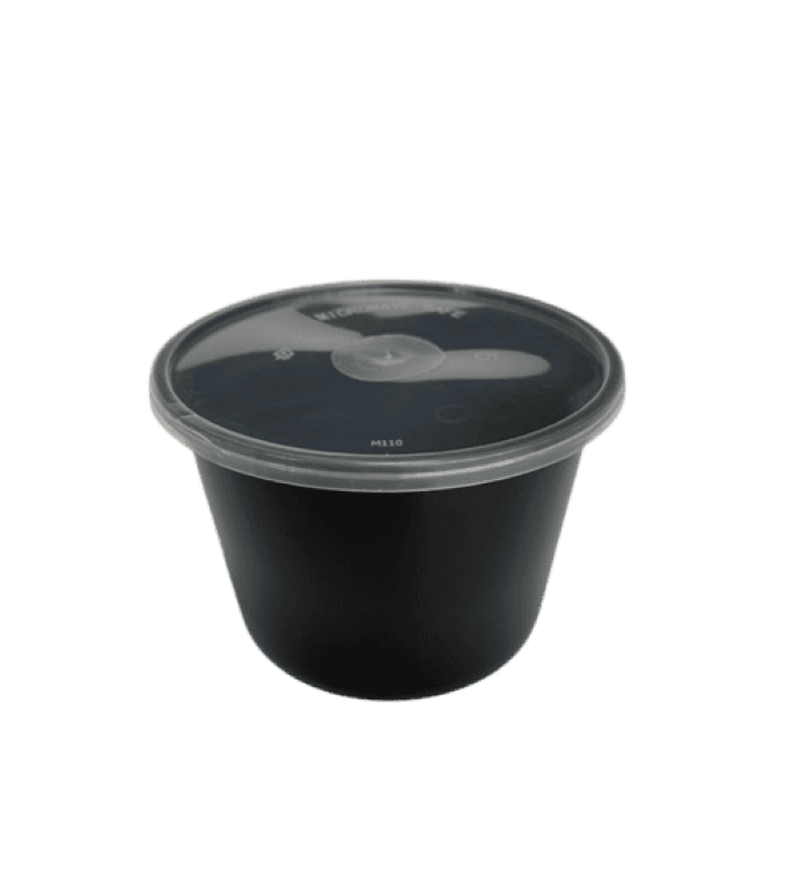 Container στρογγυλό PP μαύρο για φούρνους μικροκυμάτων 590ml T52 με καπάκι 50τεμάχια*9πακέτα